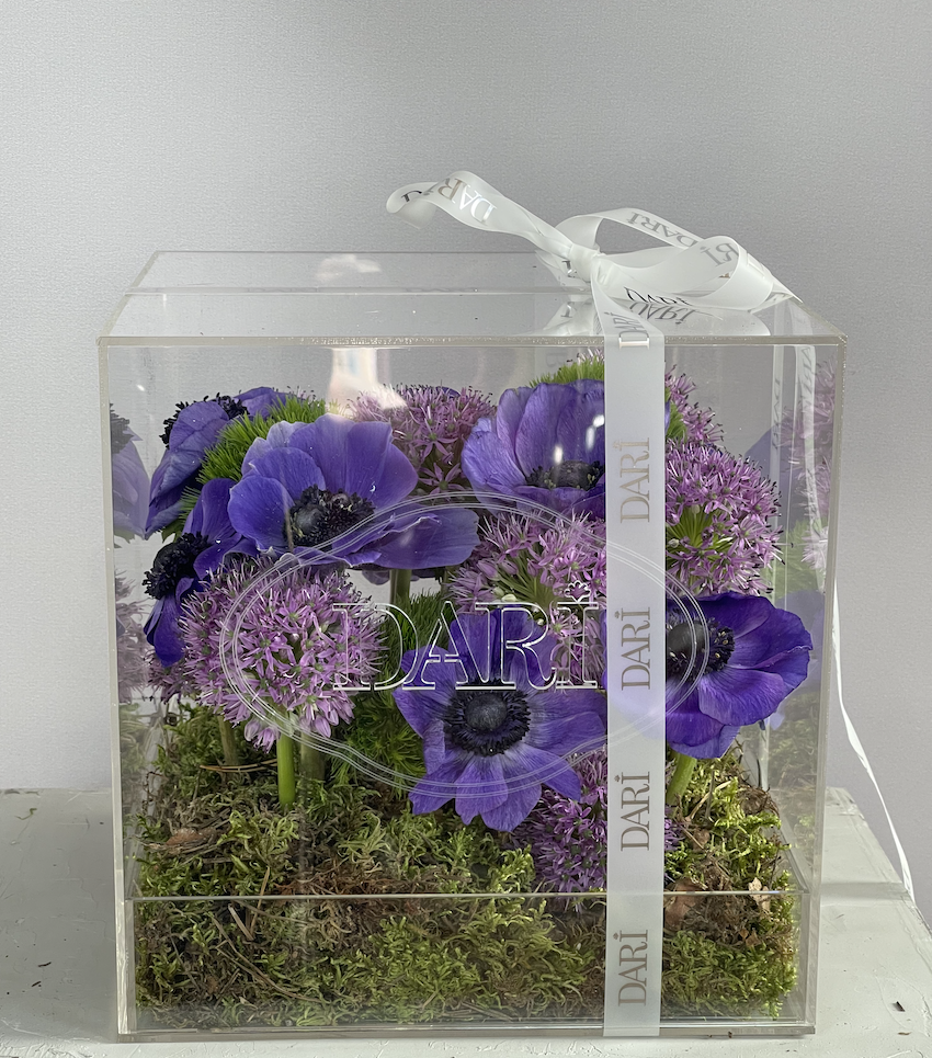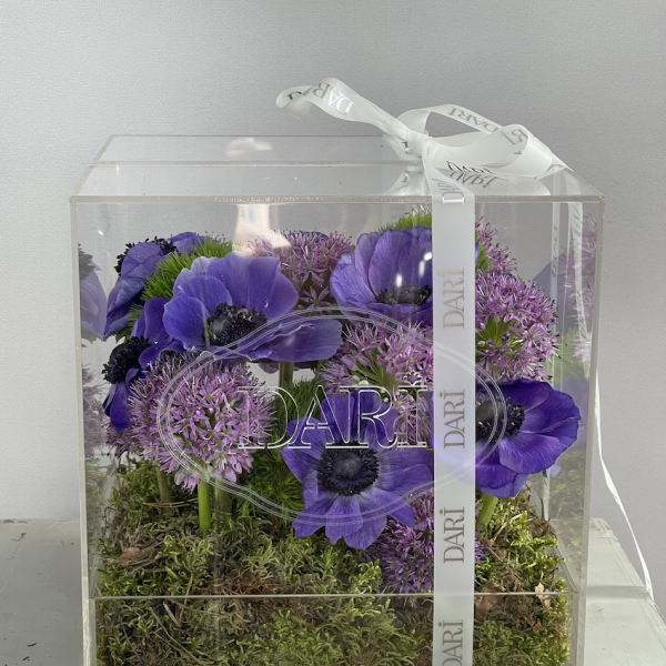 Чтобы композиция радовала вас дольше, держите её вдали от прямых солнечных лучей и отопительных приборов. Не требует вазы, достаточно регулярно увлажнять флористическую губку.