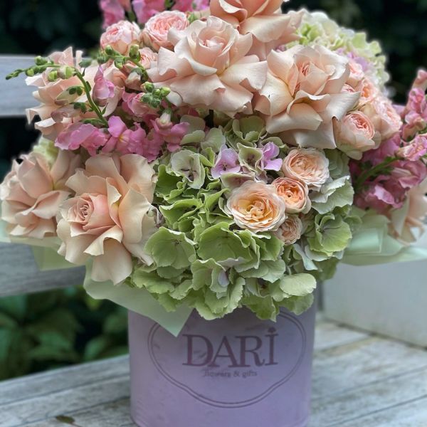 Обратите внимание, каждая композиция уникальна. Мы используем самые свежие сезонные цветы, поэтому итоговый состав может отличаться от примера на фото. Мы гарантируем сохранение общего стиля, объема и настроения вашего подарка.