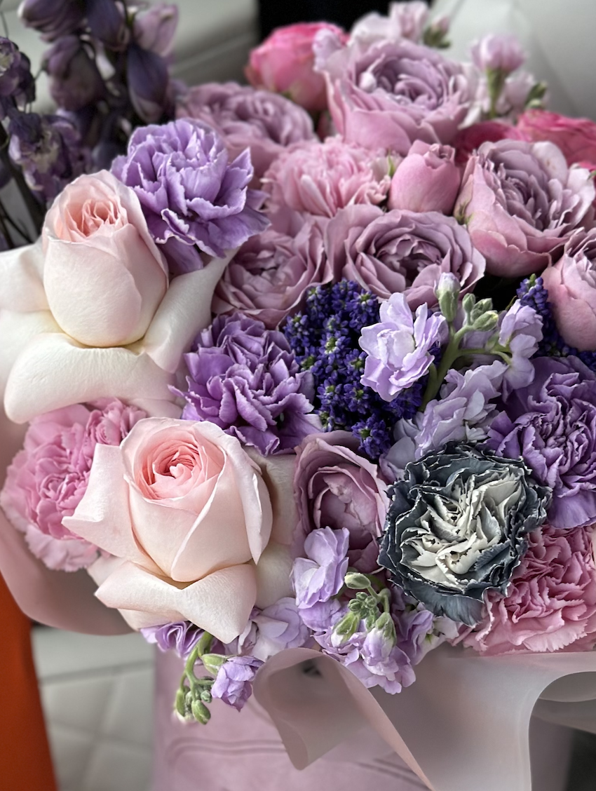 Обратите внимание, каждая композиция уникальна. Мы используем самые свежие сезонные цветы, поэтому итоговый состав может отличаться от примера на фото. Мы гарантируем сохранение общего стиля, объема и настроения вашего подарка.