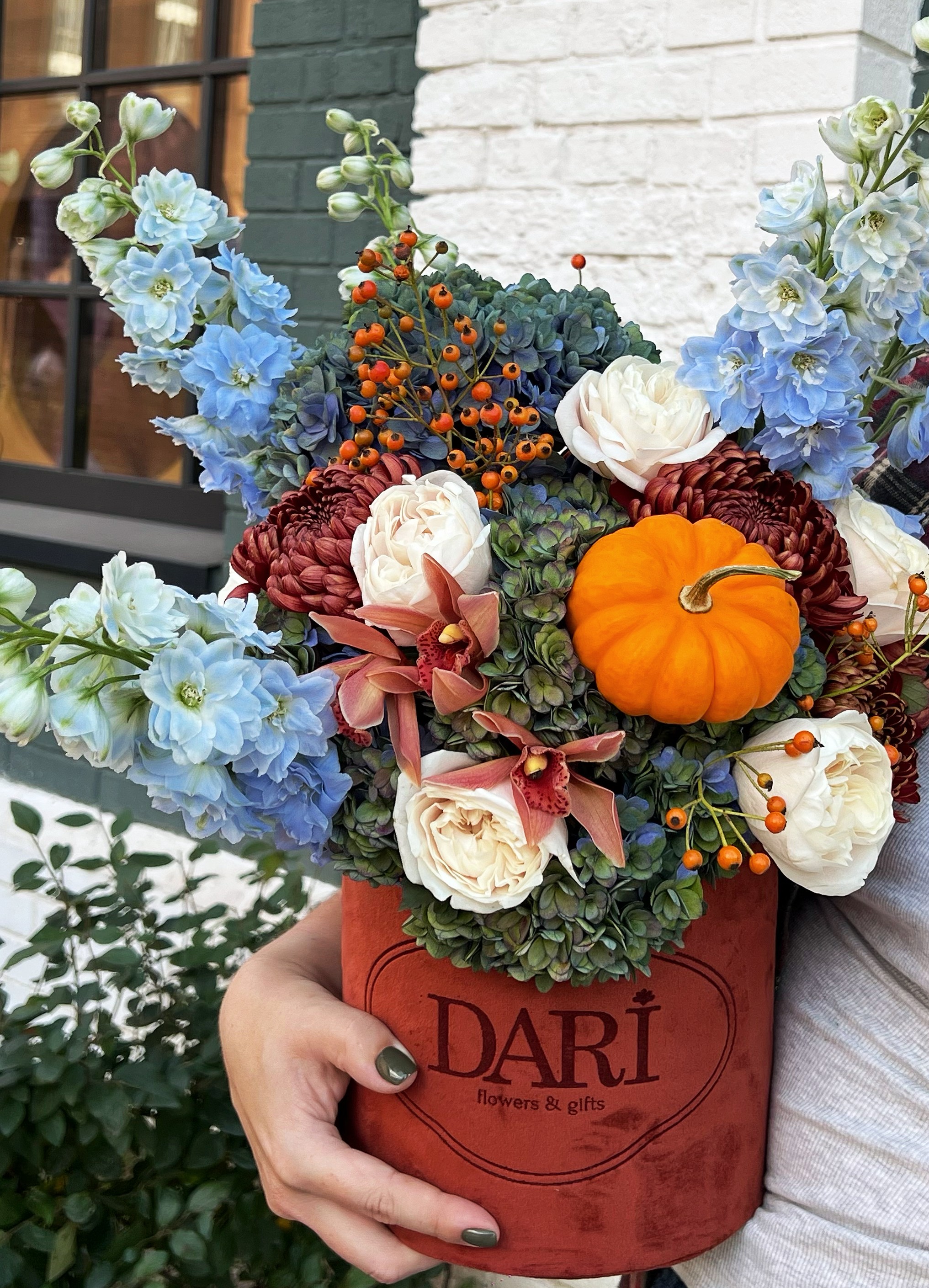 Обратите внимание, каждая композиция уникальна. Мы используем самые свежие сезонные цветы, поэтому итоговый состав может отличаться от примера на фото. Мы гарантируем сохранение общего стиля, объема и настроения вашего подарка.
